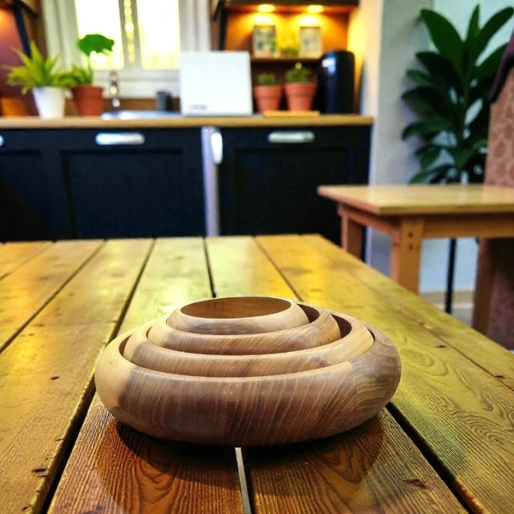 این ست از چوب طبیعی گردو با کیفیت بالا ساخته شده و با روغن گیاهی محافظ پوشش داده شده تا علاوه بر حفظ رنگ و بافت طبیعی چوب، دوام و مقاومت بیشتری داشته باشه. طراحی خمرهای و گرد این کاسهها جلوهای گرم و چشمنواز به دکور میز میده.