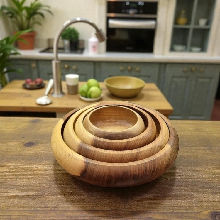 ست کاسه چوبی خمرهای گردو (۴ عددی)