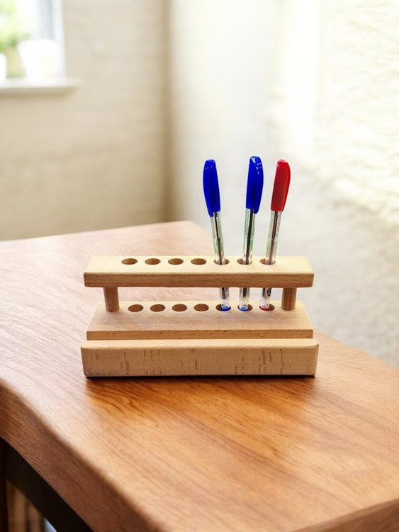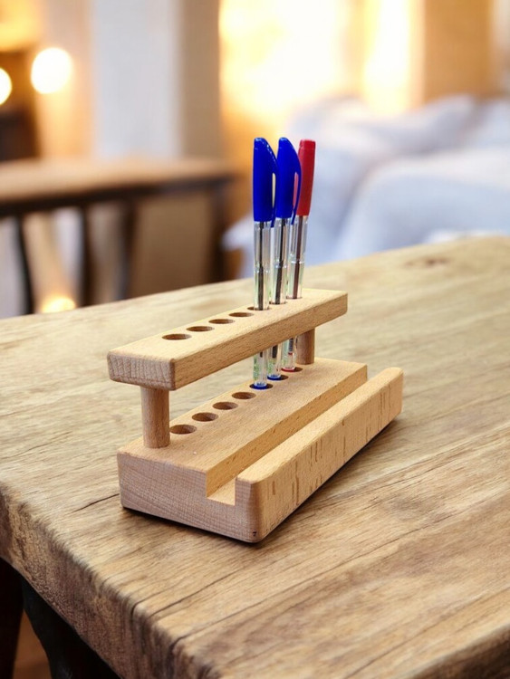 اگر به میز کارت نظم، زیبایی و حس طبیعی میخوای اضافه کنی، این پایه تبلت و جاقلمی چوبی انتخاب فوقالعادهایه 🌿