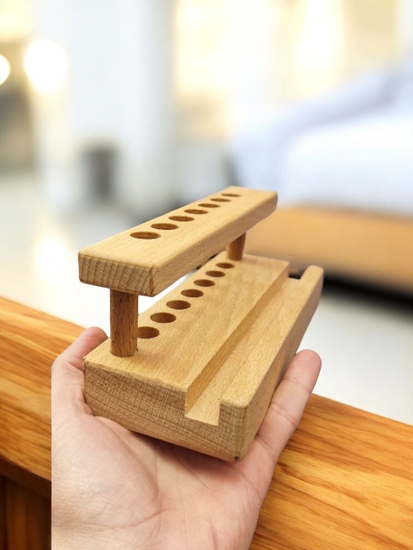 اگر به میز کارت نظم، زیبایی و حس طبیعی میخوای اضافه کنی، این پایه تبلت و جاقلمی چوبی انتخاب فوقالعادهایه 🌿