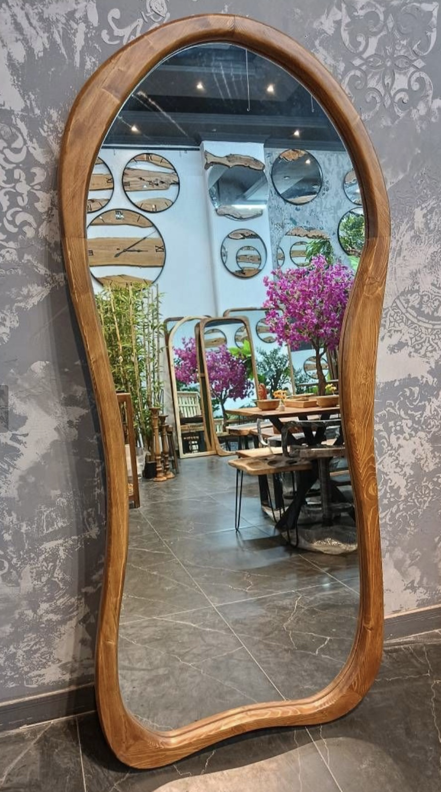 طراحی "دفرمه" (Deformed) الهام گرفته از فرمهای موجود در طبیعت است که هیچ خط مستقیم و خشکی در آنها دیده نمیشود. انحناهای ملایم و موجهای بدنه این آینه، باعث میشود که فضا از حالت رسمی خارج شده و حسی از پویایی و زندگی به خود بگیرد.
