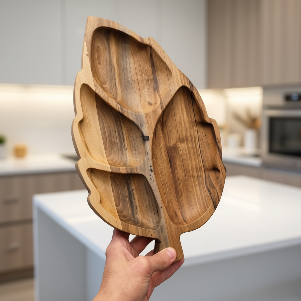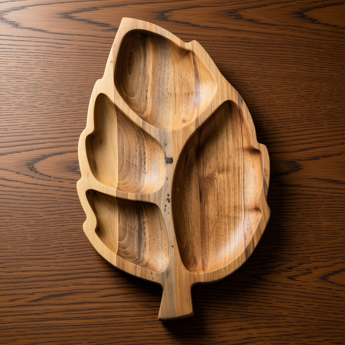 اردوخوری چوبی طرح «برگ» (۴ خانه) - ساخته شده از چوب گردو