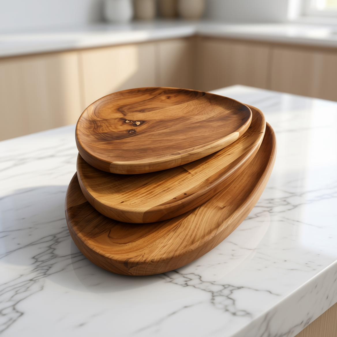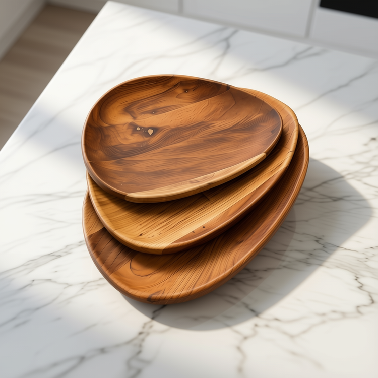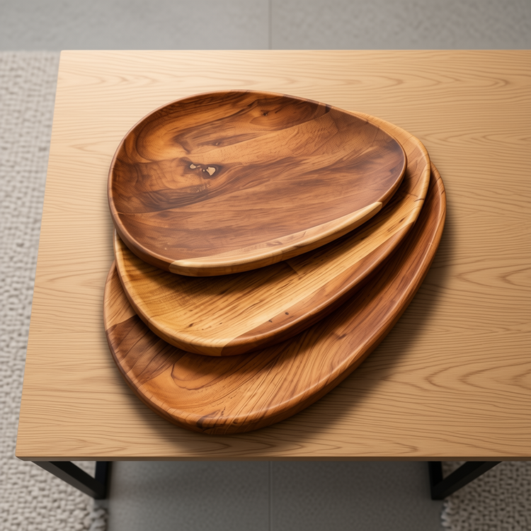 بشقاب چوبی دفرمه سه سایز مدل ارگانیک | چوب گردو لوکس | طرح روستیک مدرن